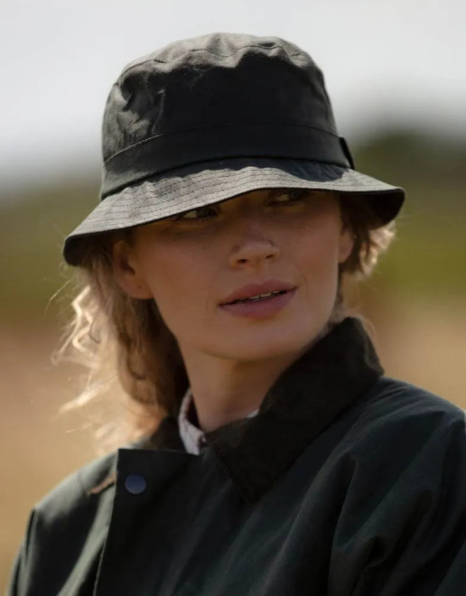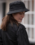 Ytterhöljet är 100 % vaxad bomull, vilket gör denna mössa duschsäker med ett brätte för vatten- och solskydd.