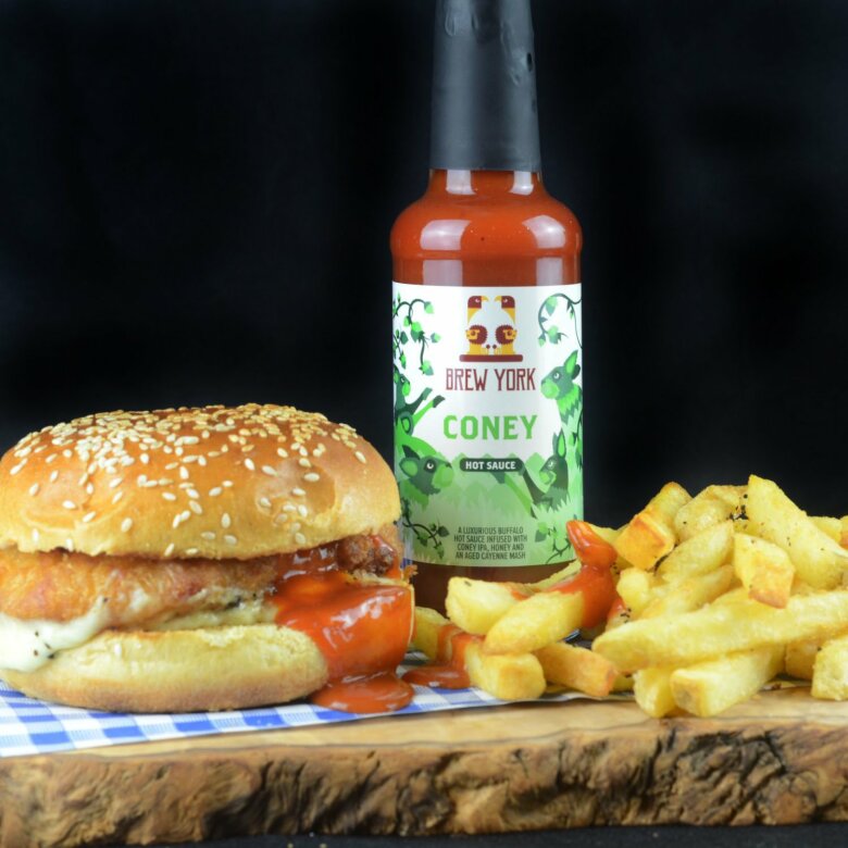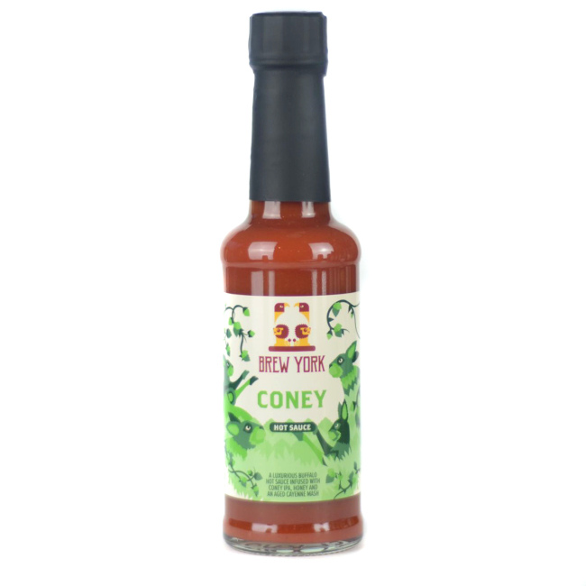 Brew York, baserat i just York, kontaktade oss för att skapa två heta såser med två av deras IPA:er från deras kärnsortiment. Deras Coney Hazy IPA är en smakrik sessionöl som vi tyckte var den perfekta basen för en honungs- och smörig Buffalo-stil hot sauce. Missa inte vår andra heta sås i samarbete med dem!