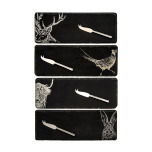 Fyra vackra serveringsfat med tillhörande ostknivar - det perfekta sättet att presentera ostbrickan eller en härlig ploughmans lunch!