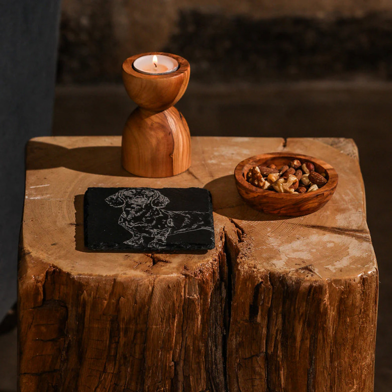 Ett handgjort underlägg med en graverad tax - ett trevligt sätt att skydda dina ytor från fukt och spill