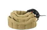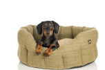 Tillverkad i tweed med innerkudde i mjukaste Sherpa.-fleece. Hela sängen är tvättbar i maskin!