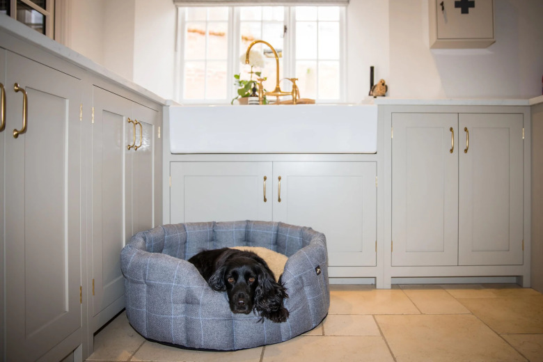 En snygg och praktisk hundsäng i slitstark tweed.
