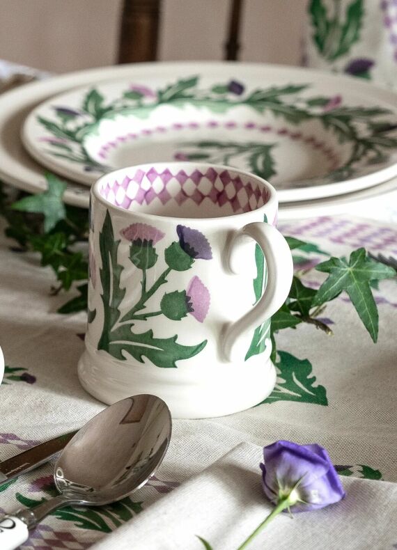 Alla muggar är handgjorda av Engelskt lergods på fabriken i Stoke-on-Trent.