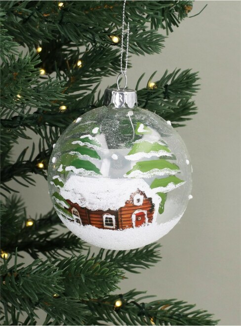 Clear with Painted Forest Cabin Scene - Julgransdekoration
