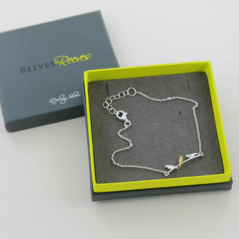 Ett nätt och elegant armband tillverkat av sterlingsilver av högsta kvalitet. Den tunna kedjan har en justerbar längd för en perfekt passform. Centralt placerat på länken sitter tre glänsande fåglar i silver, där den mittersta fågeln har en lysterfylld plätering av 18 karats guld. Ett armband som utstrålar elegans och sofistikation.