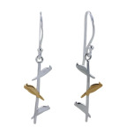 Vackra örhänge tillverkade i högkvalitativt Sterlingsilver. Tre små fåglar sitter på rad, en av dem är pläterad i 18 karats guld som kontrasterar perfekt mot det högglansiga silvret.