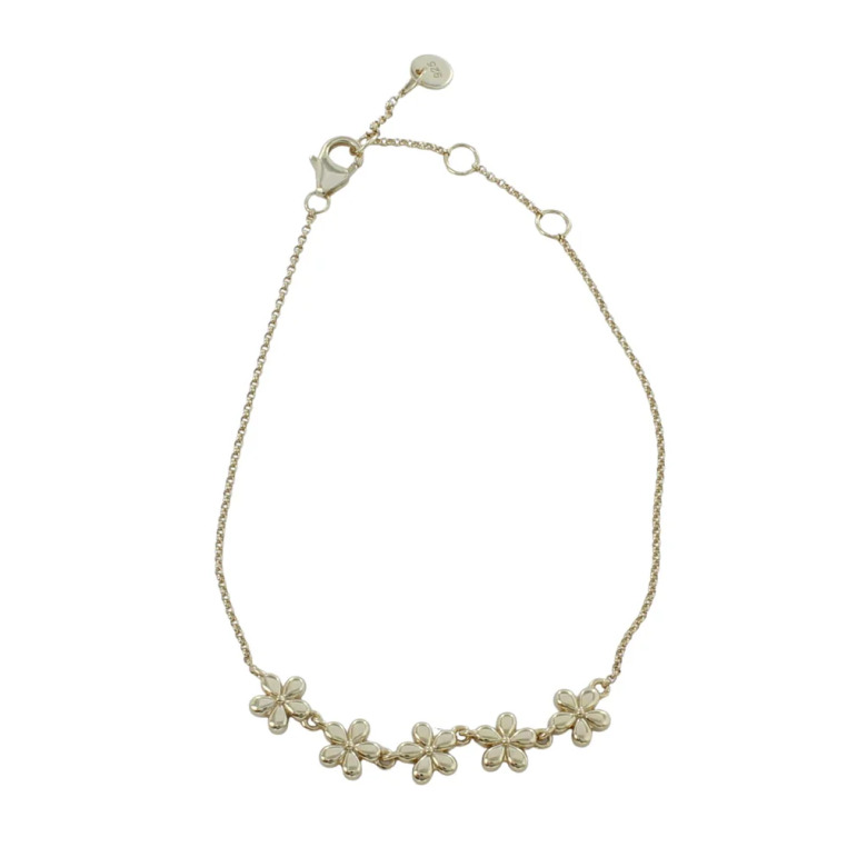 Ett stilrent och modernt armband tillverkat i högkvalitativt Sterlingsilver med en yta av 18 karats guldplätering. Armbandet har en rad med fem nätta tusenskönor och länken är justerbar för en perfekt passform.