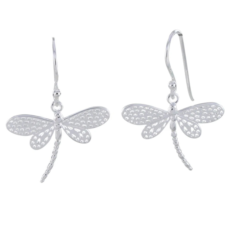 Droppörhängen i Sterling Silver med trollsländor. Inspirerade av den vackra omgivningen runt Dorset där smyckena tillverkas
