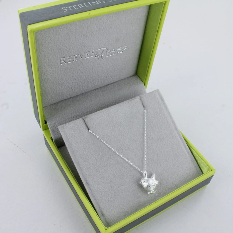 Ett underbart halsband med en helt bedårande liten gärdsmyg - en livfull blinkning till den brittiska landsbygden.