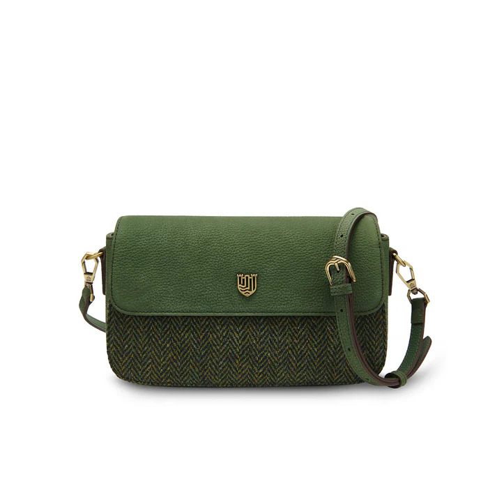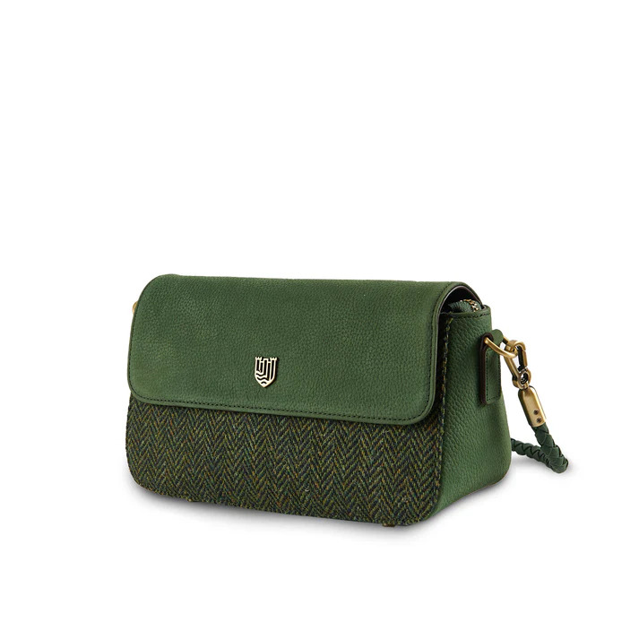 The Caithness Clutch Dark Green - Äkta läder & Harris Tweed®