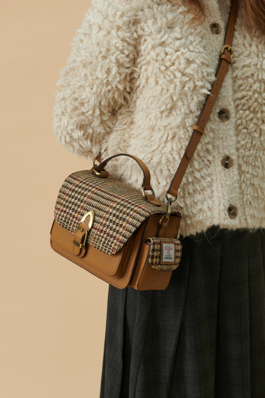 The Melrose Crossbody Beige Dogtooth - Äkta läder & Harris Tweed®