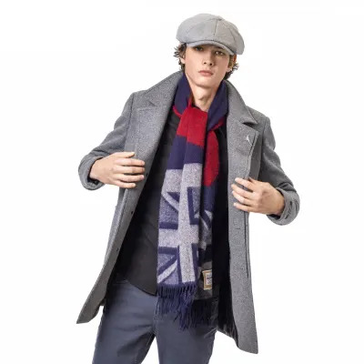 Tillverkad av premium ull med en mjukt borstad yta som känns lyxig mot huden. Den klassiska franskanten ger en traditionell känsla, medan det moderna Union Jack-mönstret adderar en samtida twist.