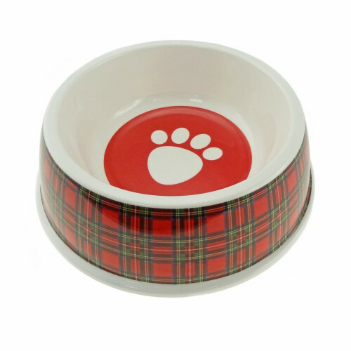 En fin hundmatskål i  klassiskt skotskt tartan-motiv