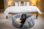 En snygg och praktisk hundsäng i slitstark tweed.