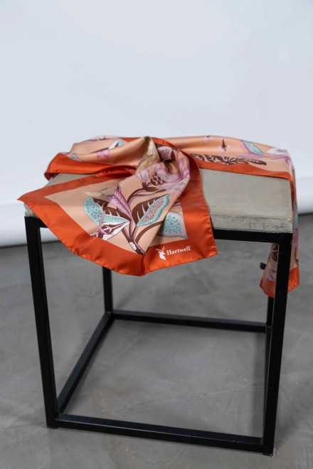 En underbar sidenscarf med vackra detaljer av klassiskt  lantmotiv. Designad i England av Hartwell Clothing.