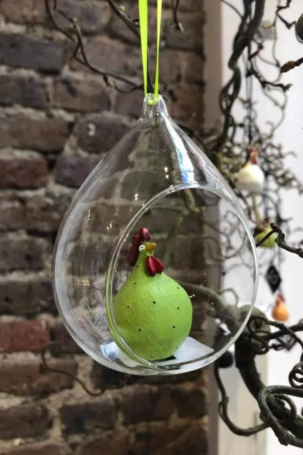 Visst blir man glad när man ser denna lilla höna hänga i ett fönster när vårsolen skiner! Det perfekta påskpyntet som gärna får dröja sig kvar för att hälsa våren välkommen!