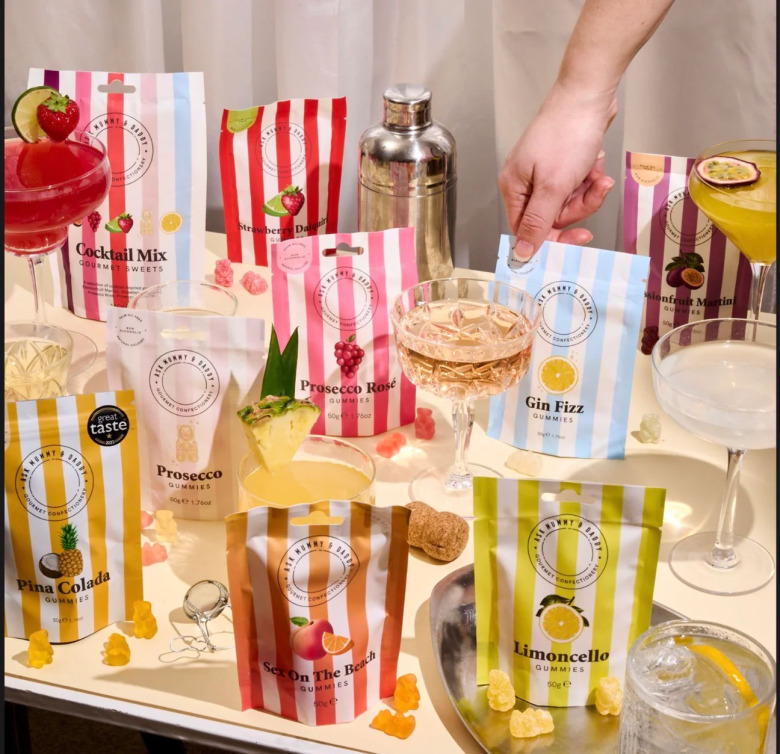 Underbara vingummi från Brittiska Ask Mummy & Daddy! Lekfulla gourmet-godisar med härliga smaker av populära drinkar & cocktails förpackade i fina färgglada påsar redo att ges bort.