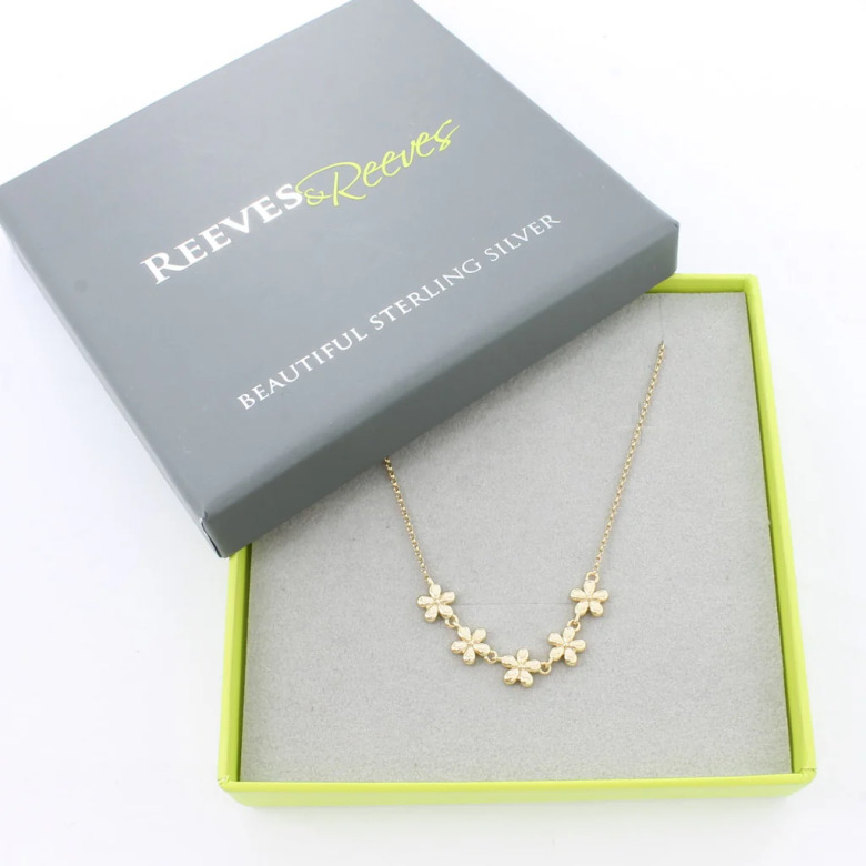 Ett stilrent och modernt armband tillverkat i högkvalitativt Sterlingsilver med en yta av 18 karats guldplätering. Armbandet har en rad med fem nätta tusenskönor och länken är justerbar för en perfekt passform.