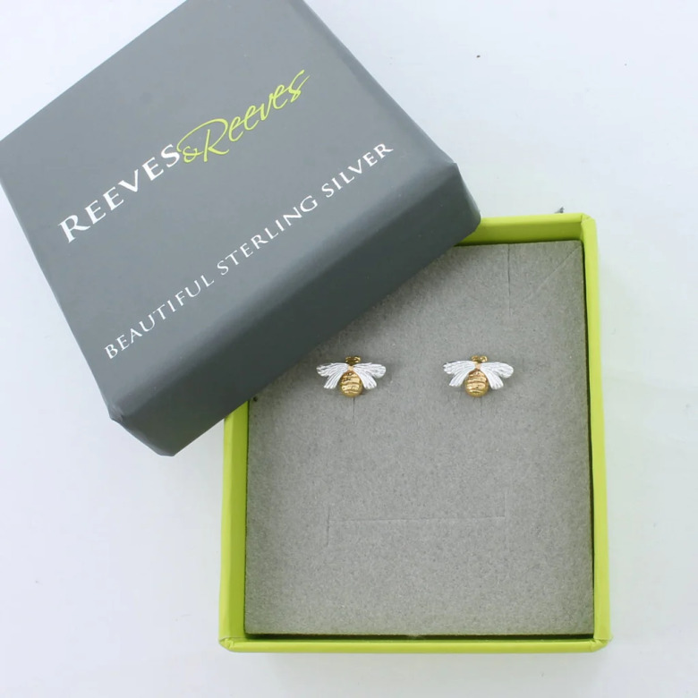 Ett vackert örhänge med ett litet bi - detaljerat och delikat. Tillverkade av högkvalitativt Sterlingsilver och med en plätering av 18 karat guld.