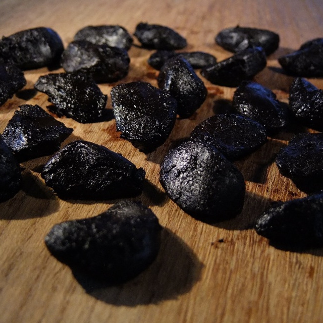 Mjuka svarta vitlöksklyftor skalade och redo att ätas, perfekt som ett hälsosamt mellanmål eller som en unik ingrediens som ger djup och smak till en mängd olika rätter.